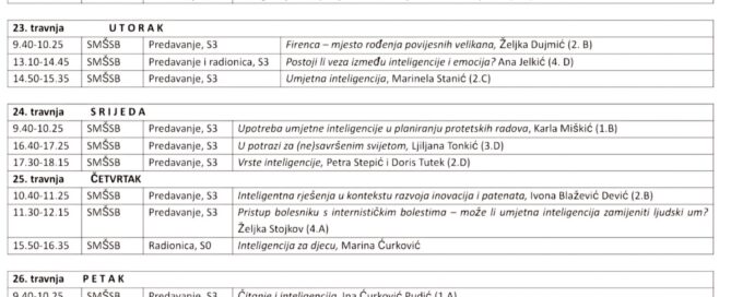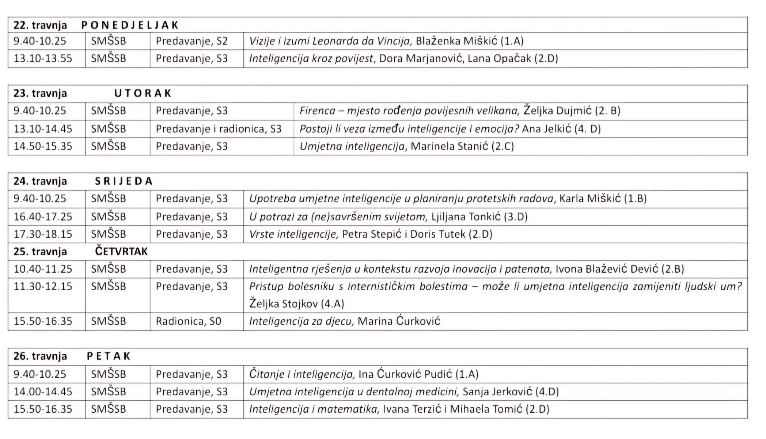 Počinje već tradicionalni Festival znanosti u cijeloj Republici Hrvatskoj pa tako i u Srednjoj medicinskoj školi Slavonski Brod. Ovogodišnja je tema INTELIGENCIJA, a program u našoj školi nikad bogatiji.