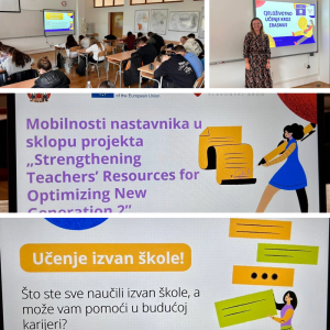 Kroz razgovor i iskustvene vježbe učenici su promišljali o tome što su do sada sve naučili izvan škole i kako stečeno znanje mogu upotrijebiti za razvoj karijere. Upoznati su s različitim oblicima učenja i načinima na koje Erasmus promiče cjeloživotno učenje za kvalitetniji život i sigurnije zaposlenje. Nastavnica je s učenicima podjelila svoje iskustvo sudjelovanja u Erasmus projektu STRONGer koji pridonosi razvoju nastavničkih kompetencija i unaprjeđuje kvalitetu nastave.