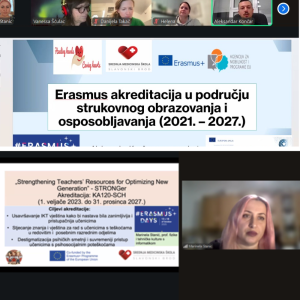 Dana 15. 10. 2025. bili smo sudionici Erasmus+ TeachMeet edukacije u organizaciji Agencije za mobilnost i programe Europske unije, koja je okupila nastavnike iz različitih dijelova Hrvatske s ciljem razmjene dobre prakse i unaprjeđenja nastave. Naši predstavnici Aleksandar Končar i Marinela Stanić s ponosom su predstavili projekte ‘Healing Hands, Caring Hearts’ i ‘STRONGer’. Ovo iskustvo još jednom potvrđuje koliko je važno kontinuirano usavršavanje i aktivna suradnja unutar Erasmus+ zajednice.
