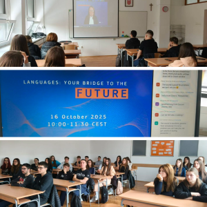 Virtualno događanje 16. 10. 2025. u organizaciji Europske komisije je istaknulo važnost poznavanja jezika, prilike koje nudi Europska unija te povezanost jezika i umjetne inteligencije u budućim zanimanjima. Učenici 2.a razreda su razgovarali s prevoditeljima i tumačima o studiju i karijeri, čime su razvijali svijest o ulozi višejezičnosti u obrazovanju i zapošljavanju.