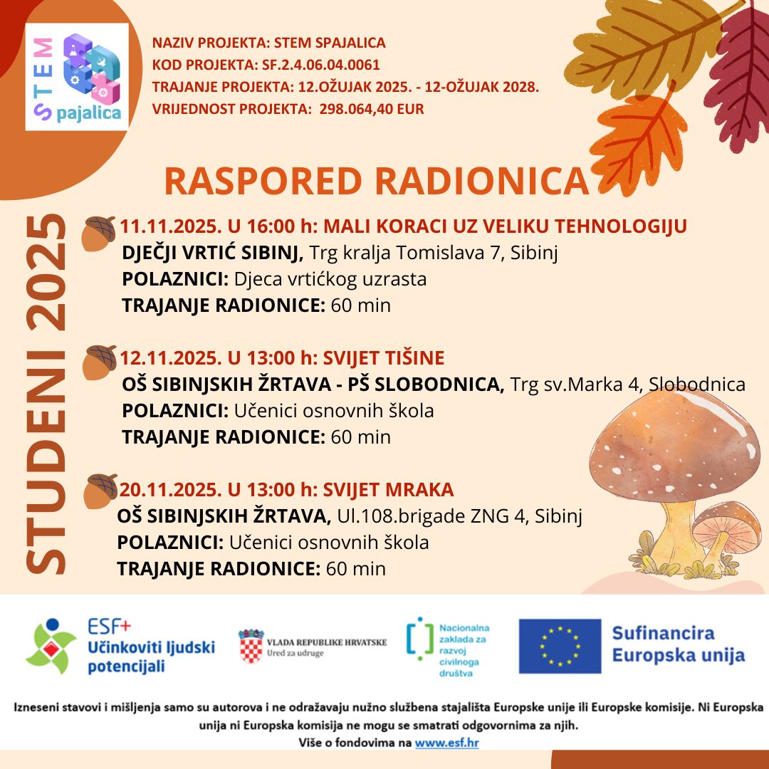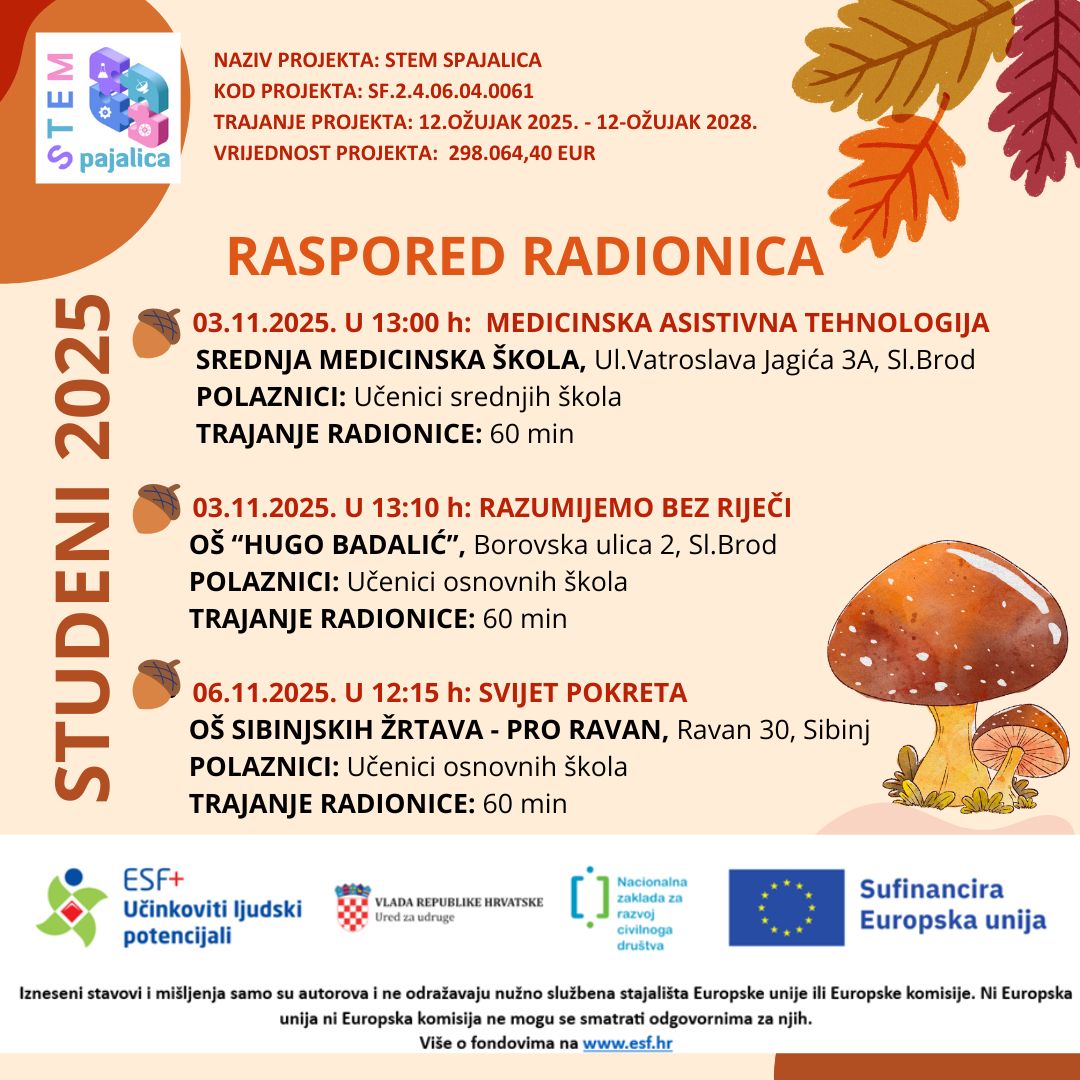 Poziv za iskazivanje interesa djece i mladih za sudjelovanje na STEM radionicama – 7. ciklus – studeni View Larger Image Poziv za iskazivanje interesa djece i mladih za sudjelovanje na STEM radionicama slavicatm@gmail.com2025-11-03T12:03:37+00:00 Share This Story, Choose Your Platform! FacebookXRedditLinkedInTumblrPinterestVk Prikaži povezane objave Raspored priprema za državnu maturu Raspored priprema za državnu maturu 16 travnja, 2026 | 0 komentara Raspored priprema za državnu maturu Raspored priprema za državnu maturu 9 travnja, 2026 | 0 komentara Svjetski dan zdravlja Svjetski dan zdravlja 8 travnja, 2026 | 0 komentara Čestitka za Uskrs Čestitka za Uskrs 31 ožujka, 2026 | 0 komentara STEM Spajalica – raspored radionica za mjesec travanj 2026. STEM Spajalica – raspored radionica za mjesec travanj 2026. 31 ožujka, 2026 | 0 komentara Medicinari u školskom sportu Medicinari u školskom sportu 27 ožujka, 2026 | 0 komentara